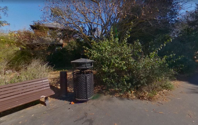 Vemos en esta foto de este parque en Google Maps, misma papelera y suelo asfaltado. Puede ocurrir que las papeleras sean estándar de la zona pero puede ser un punto de partida.