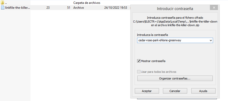 Construya la contraseña para el archivo de enlace, utilizando el nombre de la ubicación y el camino donde está enterrada la víctima.