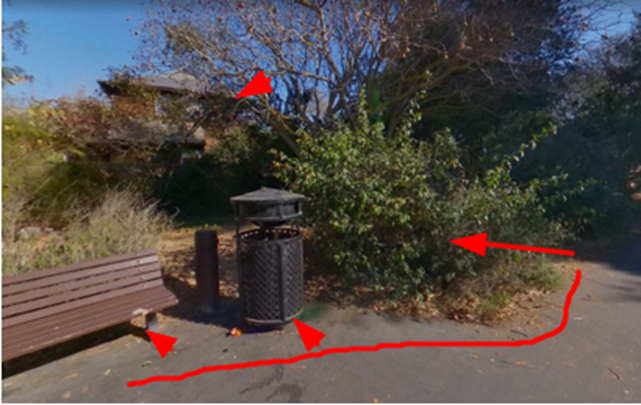 Debemos buscar las siguientes referencias en el parque donde se encuentra la víctima.
