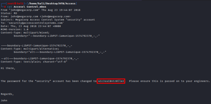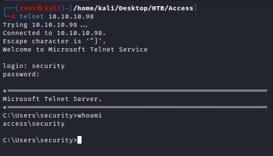 Access es una caja Windows que podemos encontrar en la plataforma Hack The Box (HTB). Comenzamos accediendo al servidor FTP con usuario anonymous para obtener un archivo zip y una base de datos Access. Posteriormente, emplearemos herramientas de línea de comandos para hallar una contraseña en la base de datos que sea válida para descomprimir el archivo zip. Dentro de este archivo zip encontraremos un archivo de correo Outlook. Leeremos el correo electrónico para descubrir la contraseña de una cuenta de un usuario de sistema, a la que nos conectaremos a través de Telnet. A partir de ahí, aprovecharemos las credenciales de administrador almacenadas en caché para conseguir la flag root.txt.