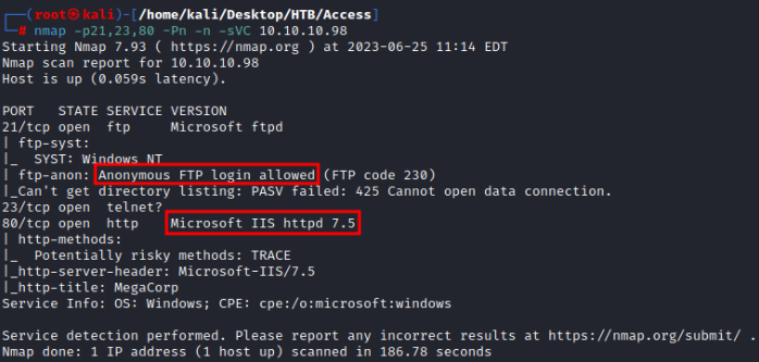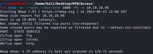 Comenzamos la resolución del CTF Access, enumerando que puertos tiene abiertos este sistema.