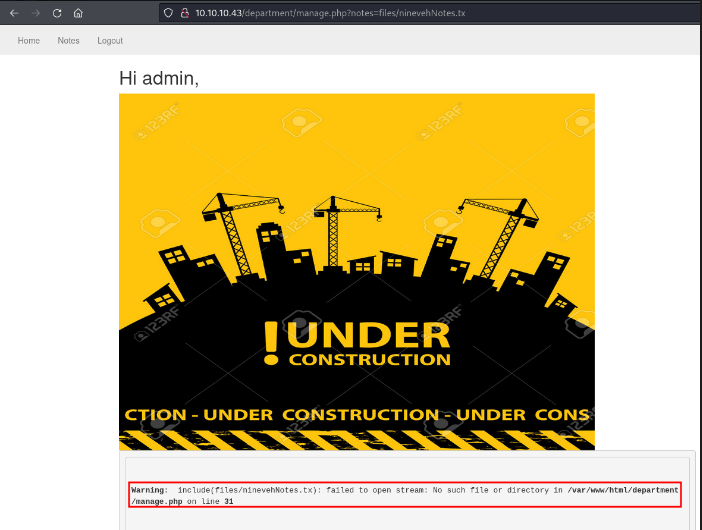 Para acceder a este archivo, vamos a aprovechar la vulnerabilidad de LFI que encontramos anteriormente.