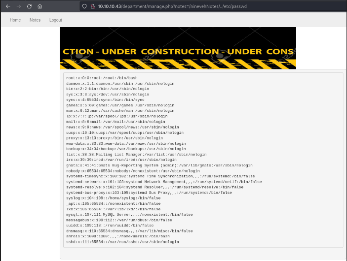 Pero si modificamos la URL, vemos que podemos acceder al archivo /etc/passwd