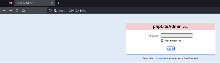 Encontramos el formulario de inicio de sesión en el gestor de bases de datos phpLiteAdmin. Tenemos una versión y también vamos a realizar un ataque de fuerza bruta para tratar de encontrar la contraseña.