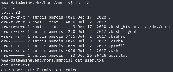 Una vez tenemos acceso al sistema con el usuario «amrois», vamos a tratar de buscar posibles vectores de elevación de privilegios. Vamos a volver a ejecutar LinEnum para tratar de enumerar los posibles vectores de elevación de privilegios existentes.