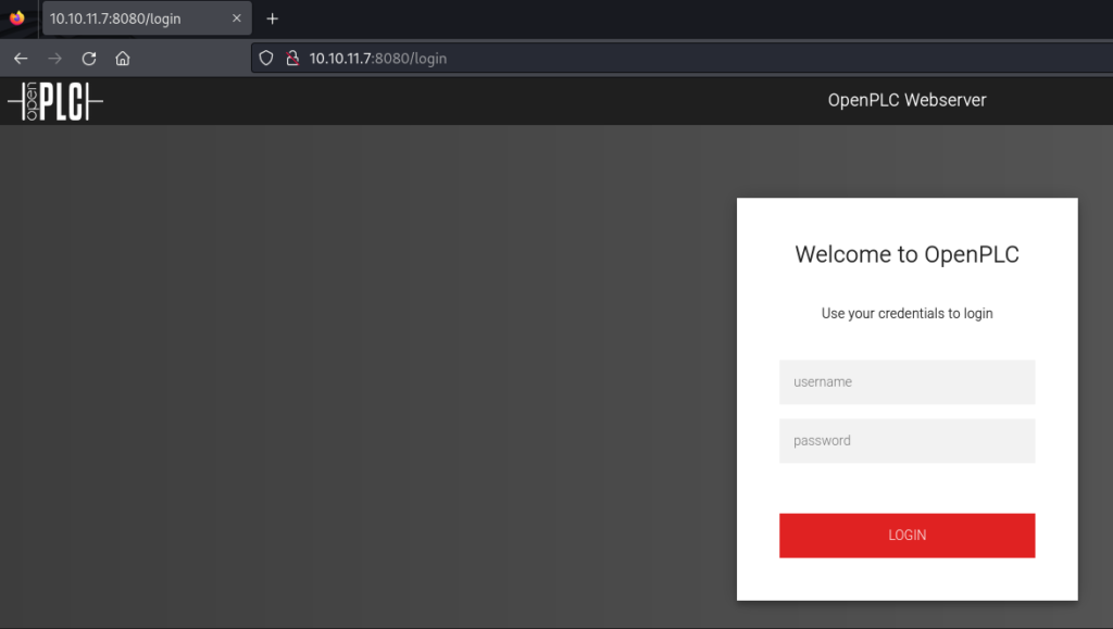 Parece un formulario de inicio de sesión para el servicio «OpenPLC», que es un controlador lógico programable de código abierto. La primera prueba que vamos a realizar es comprobar unas credenciales por defecto.