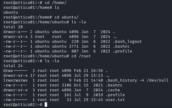 Buscamos la flag user.txt. en el directorio /home no encontramos la flag user.txt así que optamos por buscar la flag en el directorio /root, ya que accedimos con este supuesto root.