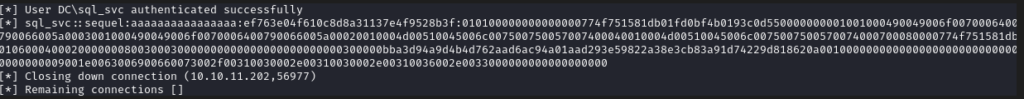 Obtenemos credenciales para el usuario sql_svc:REGGIE1234ronnie