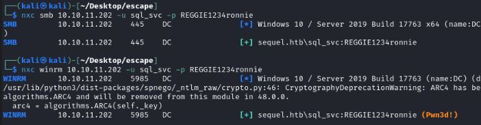 nxc winrm 10.10.11.202 -u sql_svc -p REGGIE1234ronnie