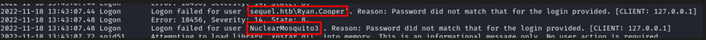 Localizamos las credenciales para el usuario Ryan.Cooper:NuclearMosquito3