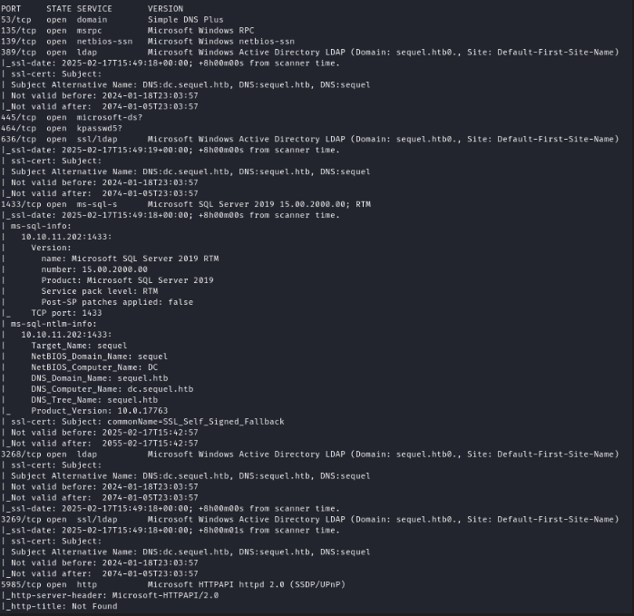nmap -p53,135,139,389,445,464,636,1433,3268,3269,5985,9389 -sVC -Pn -n --min-rate 2000 10.10.11.202