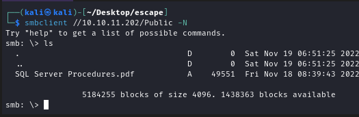 Comenzamos la resolución de la máquina Escape, realizando tareas de enumeración sobre el objetivo para detectar posibles vectores de vulnerabilidad.