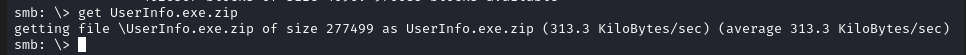 En la unidad «support-tools» localizamos una serie de ejecutables y archivos comprimidos. Hay un archivo comprimido con un nombre un poco sospechoso, que vamos a descargar en nuestro equipo de ataque.
