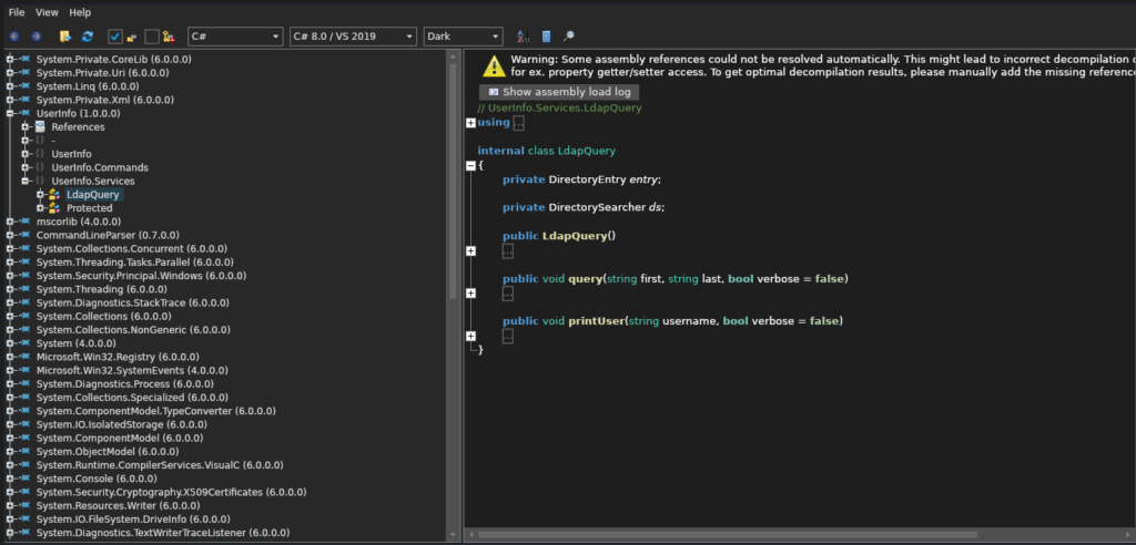 El programa parece estar escrito en .NET Framework (C# o Visual Basic). Vamos a a tratar de decompilar el .exe para ver si contiene información interesante. Para realizar esta tarea, vamos a utilizar la siguiente herramienta.