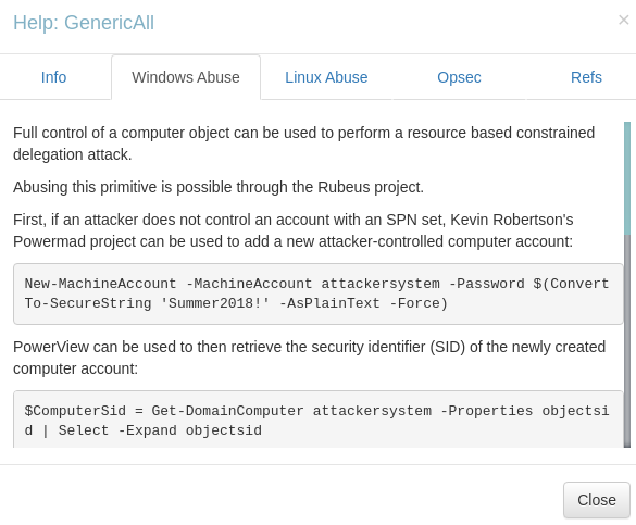 Este privilegio nos permitirá crear una cuenta de máquina en el servidor AD y a continuación, agregar la capacidad de esta nueva cuenta para que suplante a otras identidades, firmando tickets de kerberos para otros usuarios.