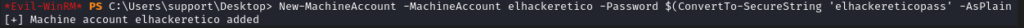 New-MachineAccount -MachineAccount esteesminuevopc -Password $(ConvertTo-SecureString 'elhackereticopass' -AsPlainText -Force)