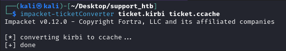 impacket-ticketConverter ticket.kirbi ticket.ccache