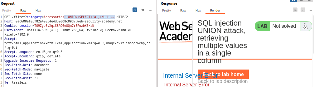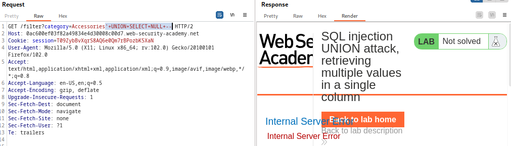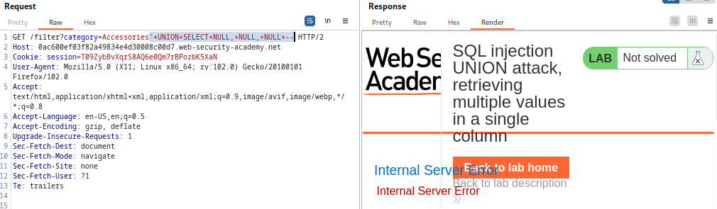 LABORATORIO 10: SQL injection UNION attack, retrieving multiple values in a single column