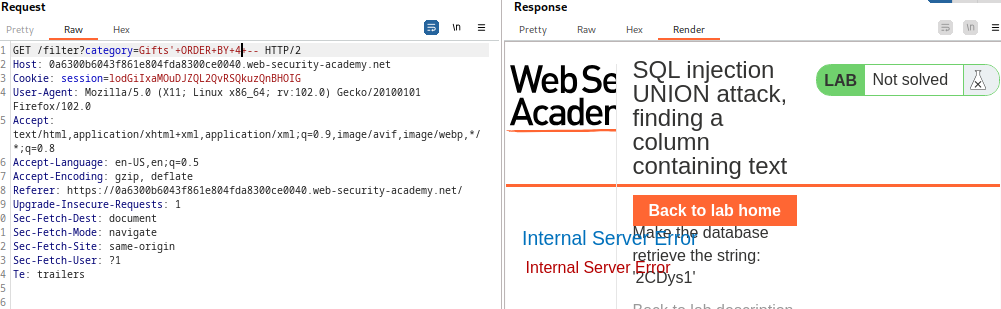 LABORATORIO 8: SQL injection UNION attack, finding a column containing text