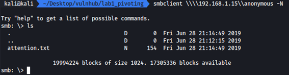 Vamos a acceder al recurso compartido anonymous utilizando la herramienta smbclient de la siguiente manera: