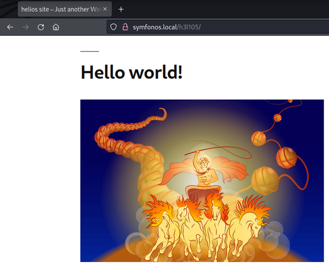 Parece un sitio Web montado sobre un CMS WordPress. Detalle importante, cuando intentamos acceder a cualquiera de los enlaces, estos nos redirigen a un sitio Web con dominio symfonos.local. Vamos a registrar este dominio en nuestro archivo /etc/hosts para poder listar el contenido del sitio Web.
