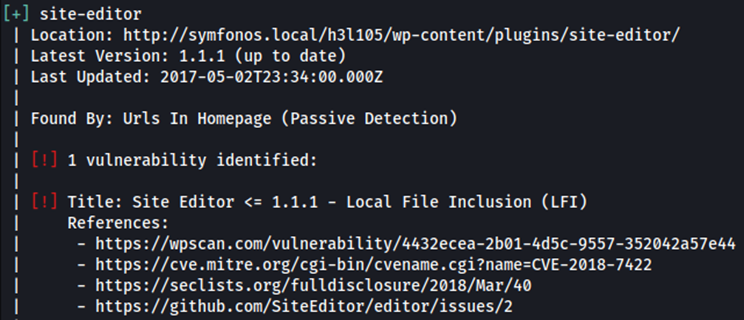 Después de la enumeración con wpscan, se descubre que 2 complementos son vulnerables a LFI no autenticado.