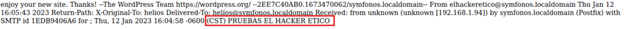 A este archivo sí que tenemos acceso. Como SMTP se ejecuta en el puerto 25, vamos a utilizarlo para enviar un correo al usuario “helios” que contenga el código malicioso. Primero, vamos a comprobar si existe dicha vulnerabilidad enviando un mensaje de prueba.