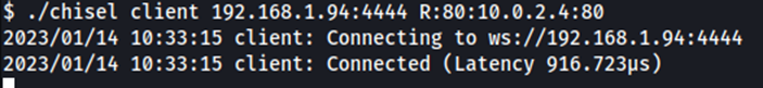 El siguiente paso será enviar un ejecutable de Chisel a la máquina Symfonos 1 utilizando el servidor Python HTTP que utilizamos anteriormente, darle permisos de ejecución y ejecutarlo de la siguiente manera: