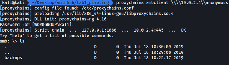 A partir de este momento deberemos utilizar la utilidad proxychains para poder utilizar el túnel que hemos creado y ya tendremos conexión con esta máquina que no está conectada en nuestra red.
