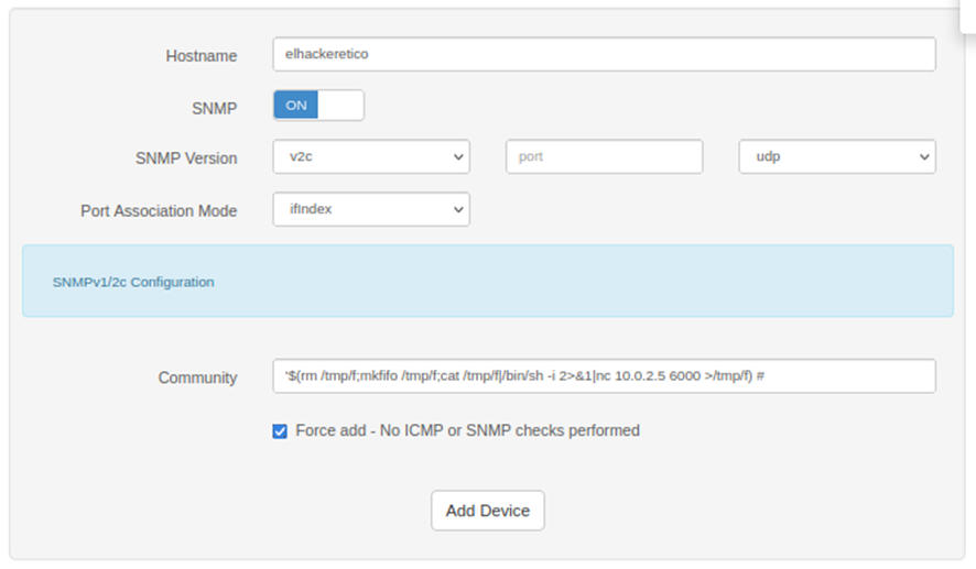 Vamos a crear el dispositivo nuevo en LibreNMS.