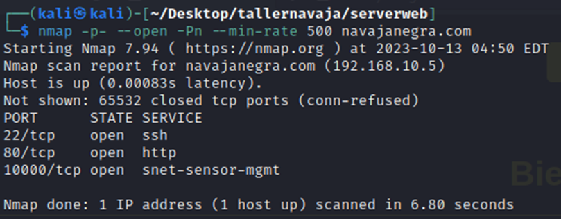 nmap -p- --open -Pn --min-rate 500 navajanegra.com