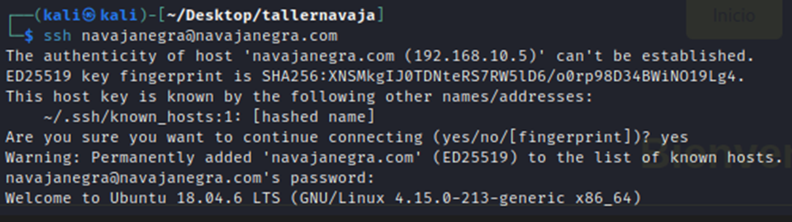 Obtenemos acceso al sistema como navajanegra.