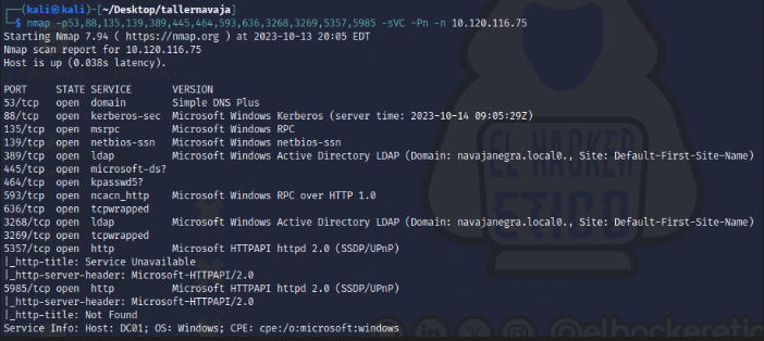nmap -p53,88,135,139,389,445,464,593,636,3268,3269,5357,5985 -sVC -Pn -n 10.120.116.75