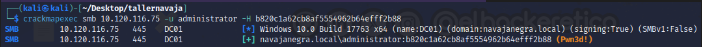 Obtenemos el hash del usuario Administrator en lo que parece que es el Domain Controller. Vamos a conectarnos con las credenciales del usuario Administrator.