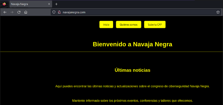 El vector de entrada al sistema será el sitio Web del congreso Navaja Negra, navajanegra.com. Comenzamos.