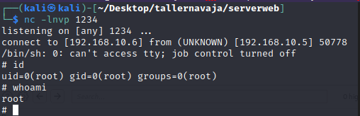 El siguiente paso es configurar un oyente nc en el puerto 1234 en nuestra máquina de ataque y ejecutar el exploit.