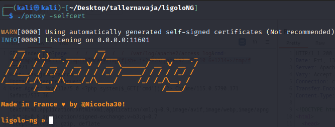 Y volveremos a obtener conexión en la máquina objetivo aprovechando la vulnerabilidad de LFI para ejecutar comandos remotos.