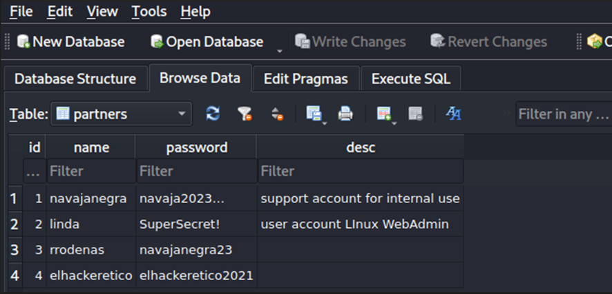 En el archivo db, encontramos la misma información que encontrábamos en el archivo db de la enumeración del servidor Web.