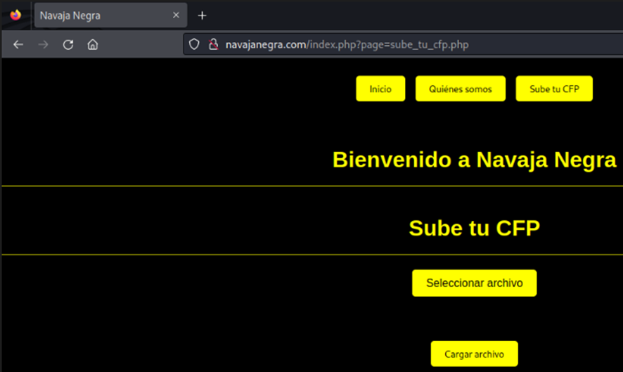 Parece el sitio Web del congreso de Ciberseguridad «Navaja Negra». Vamos a enumerar por un lado vectores vulnerables de acceso al sistema, y por otro, directorios y archivos que podemos encontrar en el sistema.