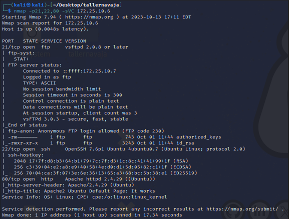 nmap -p21,22,80 -sVC 172.25.10.6