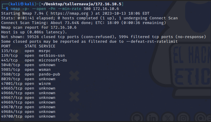 nmap -p- --open -Pn --min-rate 500 172.16.10.6